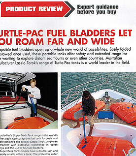 Turtle-Pac is an Australian firm that has been making these products for fuel, water and other liquids since 1978, and the company has supplied such tank products for a variety of commercial and recreational vessels.”
