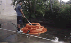 Note ties - board and large drain pipe correctly configured for ocean work
