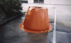 Inflatable collar floatation lifts up tank wall. There are no frames.