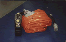 A 1000 litre Special Padded Cushion Tank empty and ready to return to base