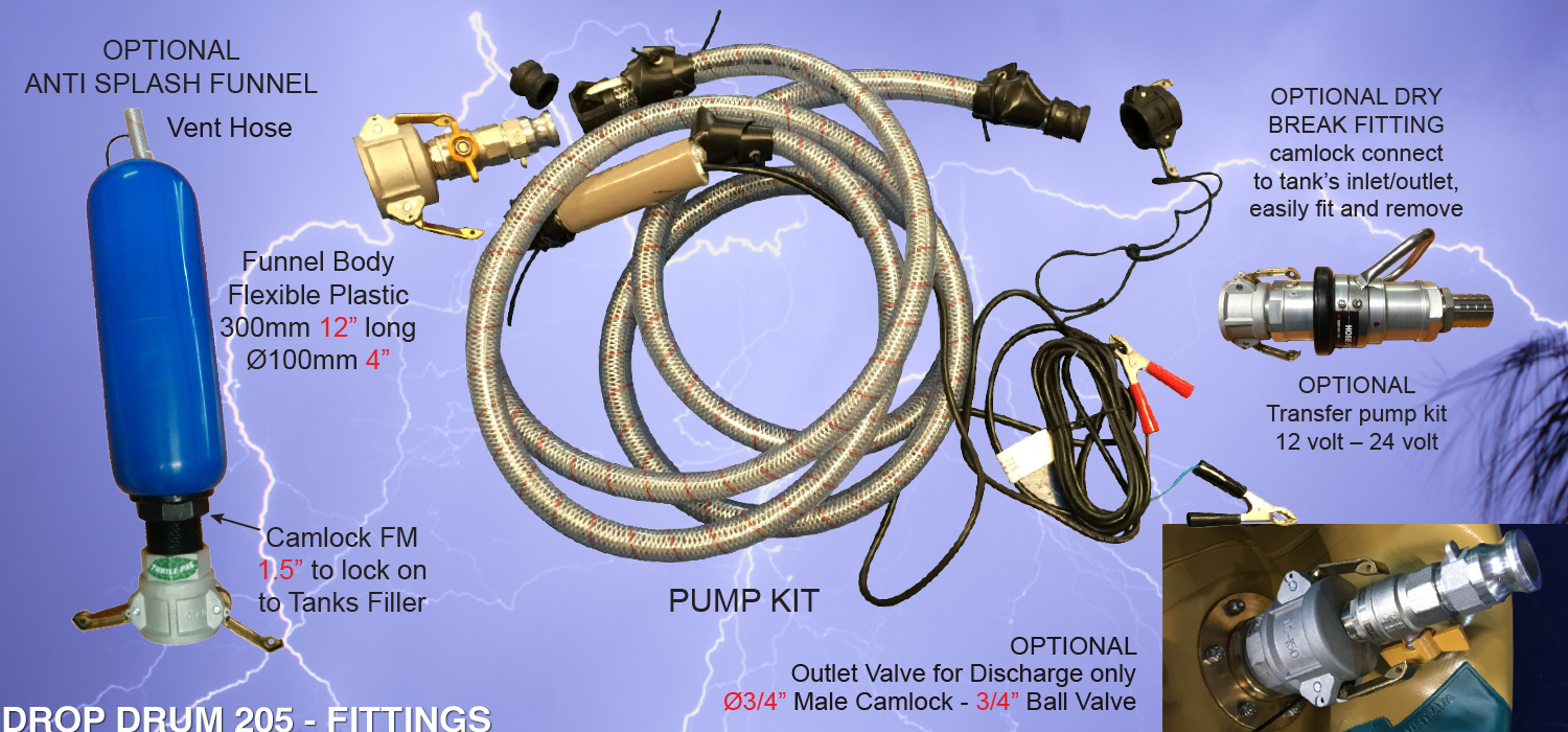 BREAK FITTING camlock connect to tank’s inlet/outlet, easily fit and remove