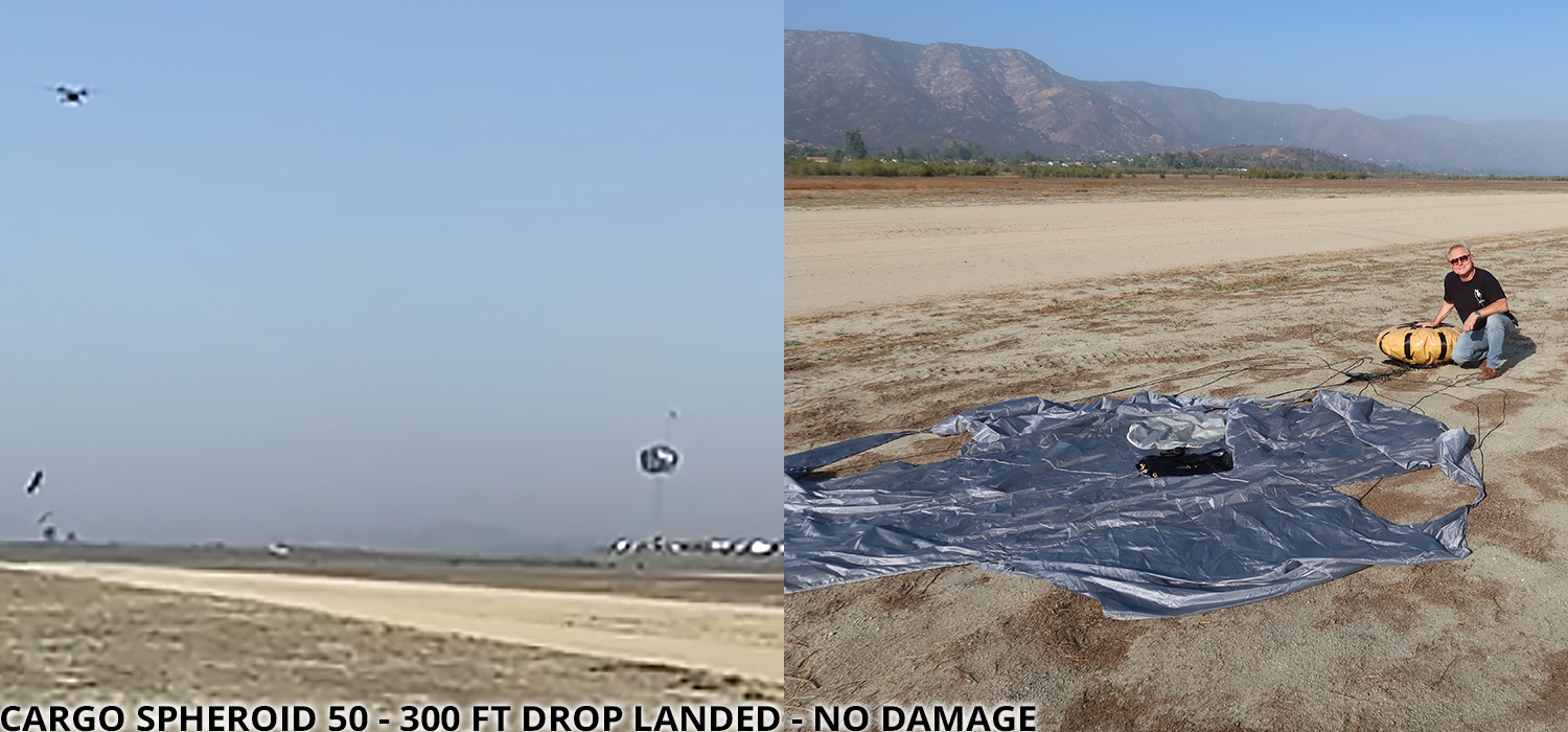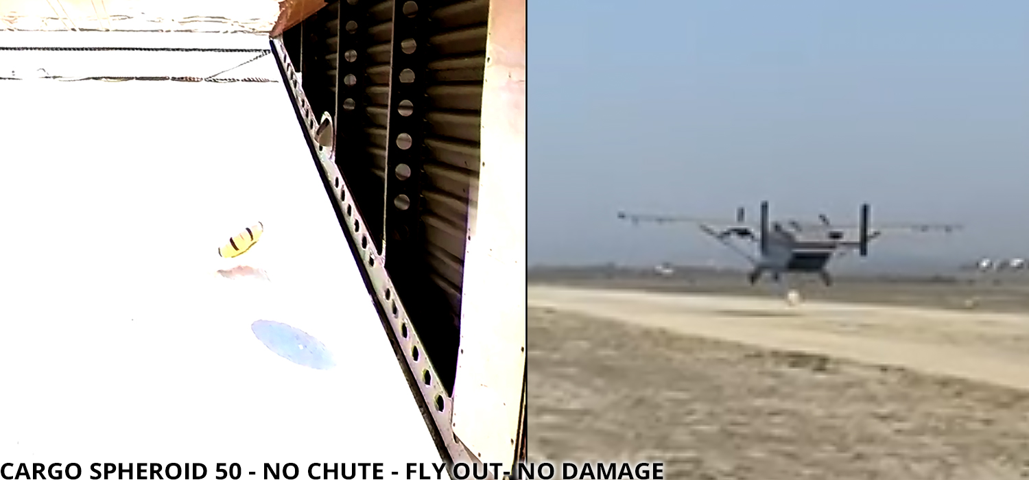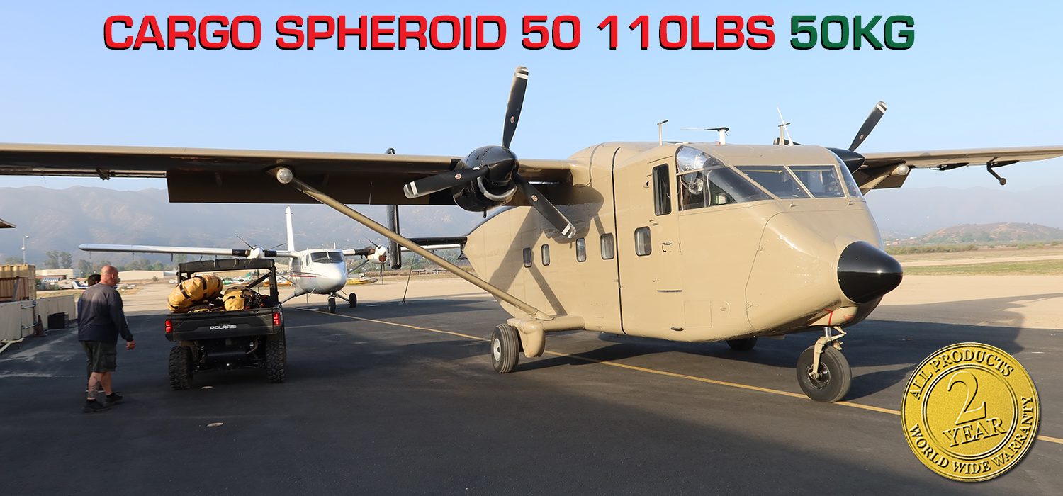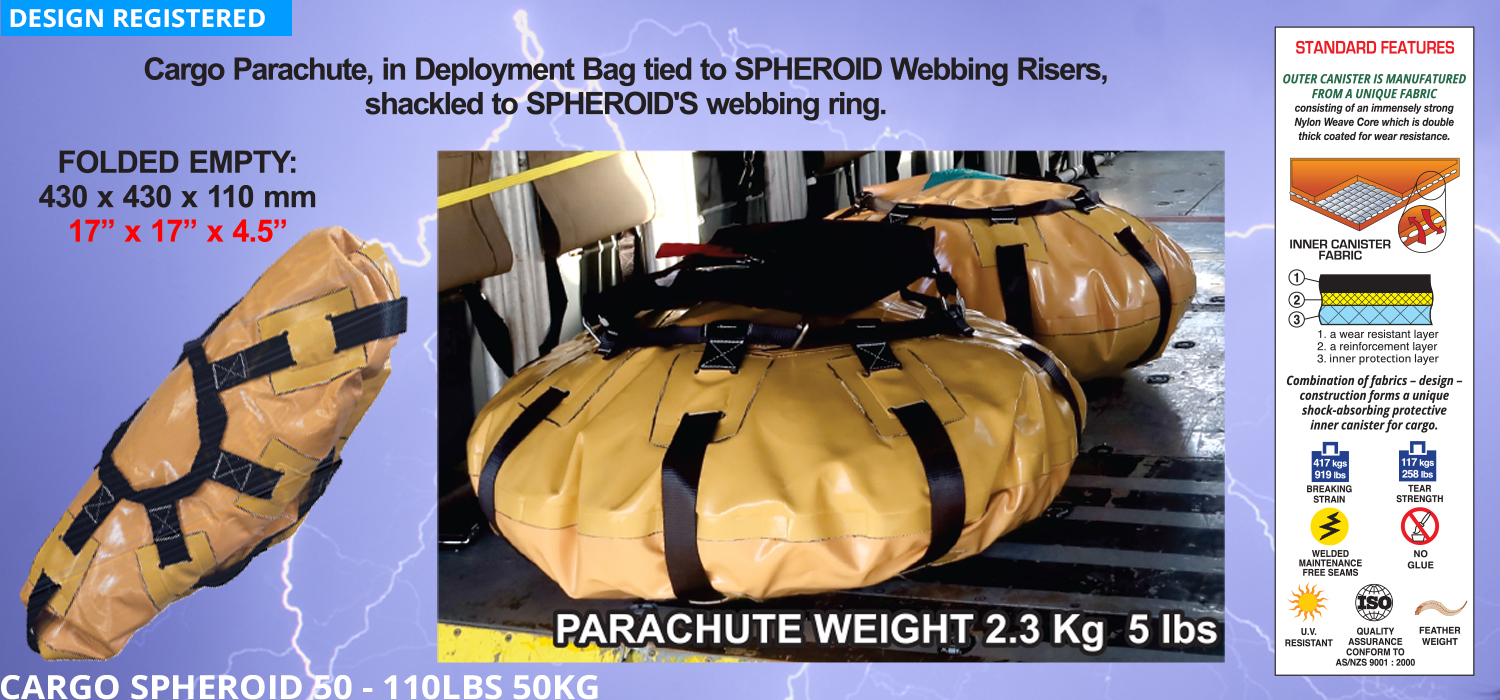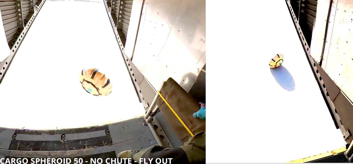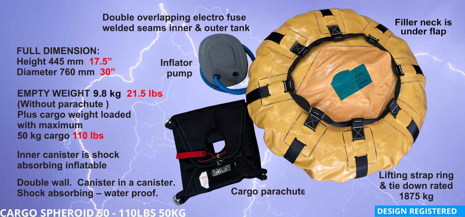 CARGO SPHEROID 50 is a compact drop cannister to handle – roll by one person out of aircraft or on the ground.
