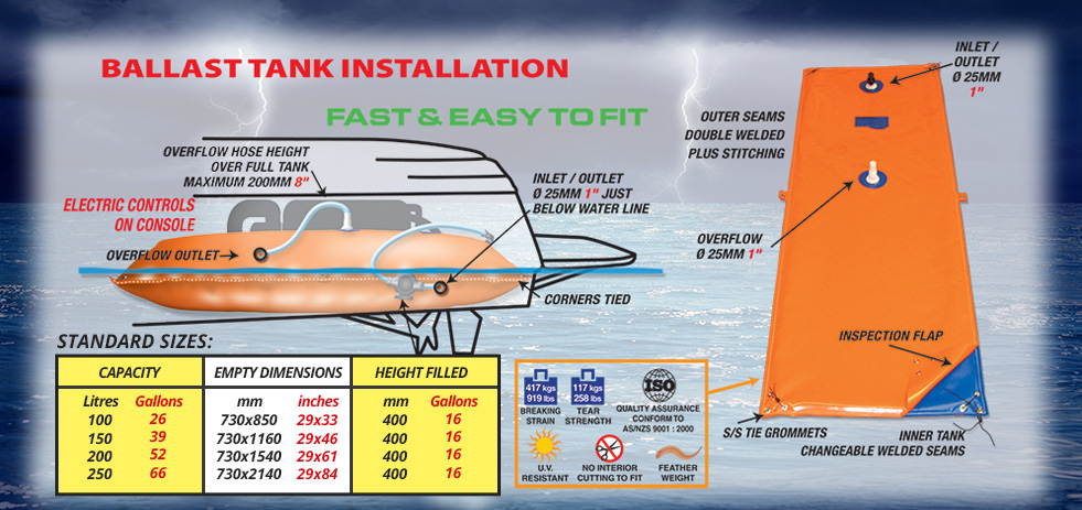 PRICE IDEASKI BOAT BALLAST TANK 100 Lt 26 US Gal. start at about A$ 270 – to A$ 420 – including FEDEX to most countries.