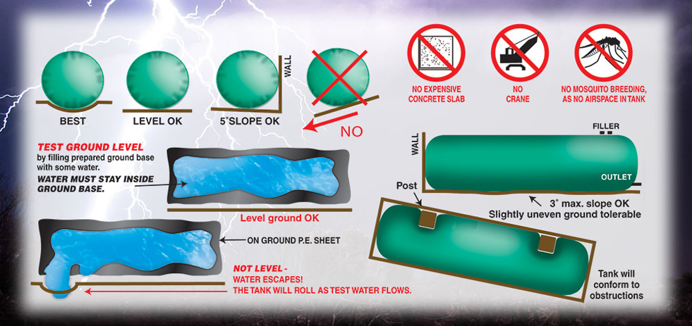 Installation is a fraction of the cost and work of rigid tanks and a cement slab is not needed neither is heavy machinery to mess up your garden.