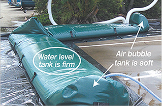 The test tank contained the pressure without anydamage to the seams or fabric.