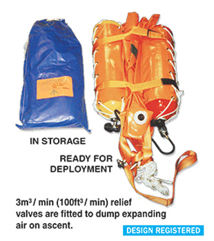 Designed for underwater ordnance recovery, removal to a safe disposal area or to lower ordnance in a controlled manner. Various size scuba cylinders can be fitted to supply air to 90m (295ft) depth.